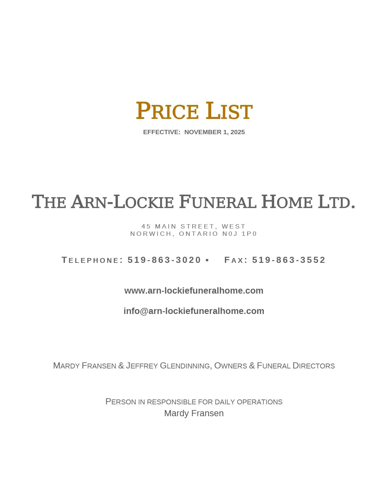 Price List