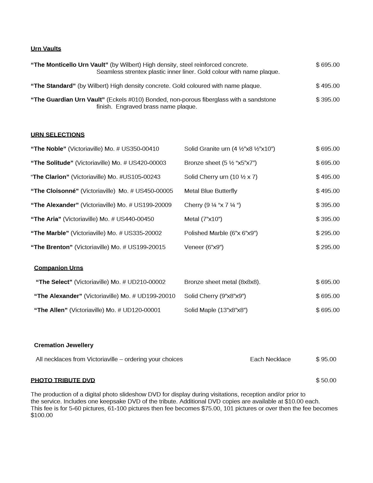 Memorial Services